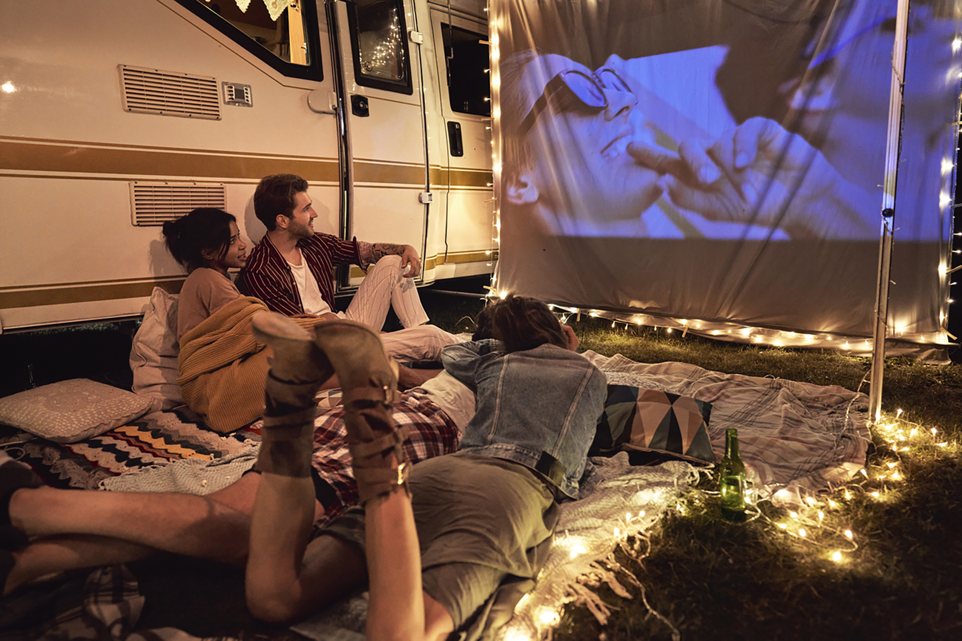 One major benefit that having a TV in an RV offers is bringing movie nights outdoors! With many campgrounds now offering outdoor theater spaces or designated areas for setting up projectors, the results can often be magical––imagine watching your favorite flicks al fresco?